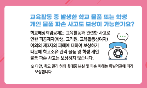 교육활동 중 발생한 학교 물품 또는 학생 개인 물품 파손 사고도 보상이 가능한가요?