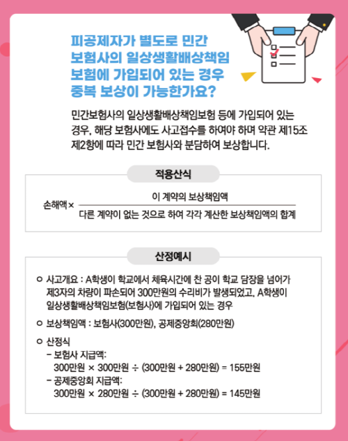 피공제자가 별도로 민간보험사의 일상생활배상책임 보험과 중복 보상이 가능한가요?