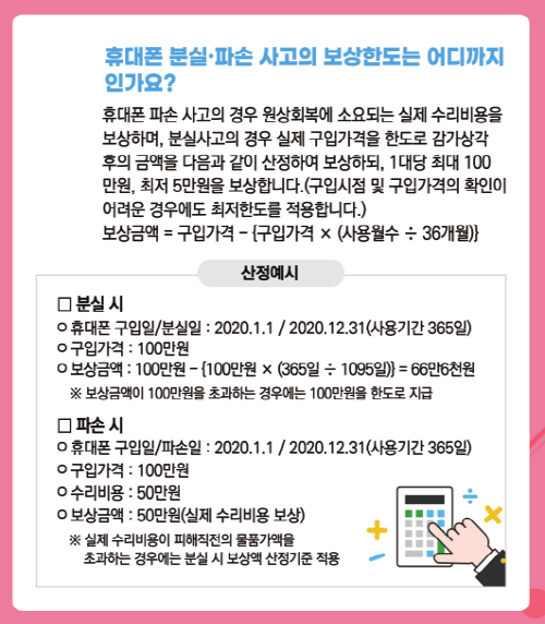 휴대폰 분실ㆍ파손 사고의 보상한도는 어디까지 인가요?