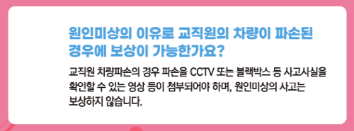 원인미상의 이유로 교직원의 차량이 파손된 경우에 보상이 가능한가요?