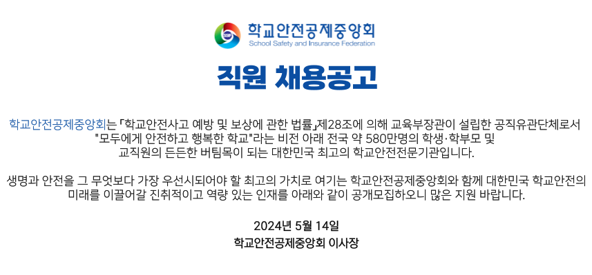 학교안전공제중앙회 채용공고 제2024-05호