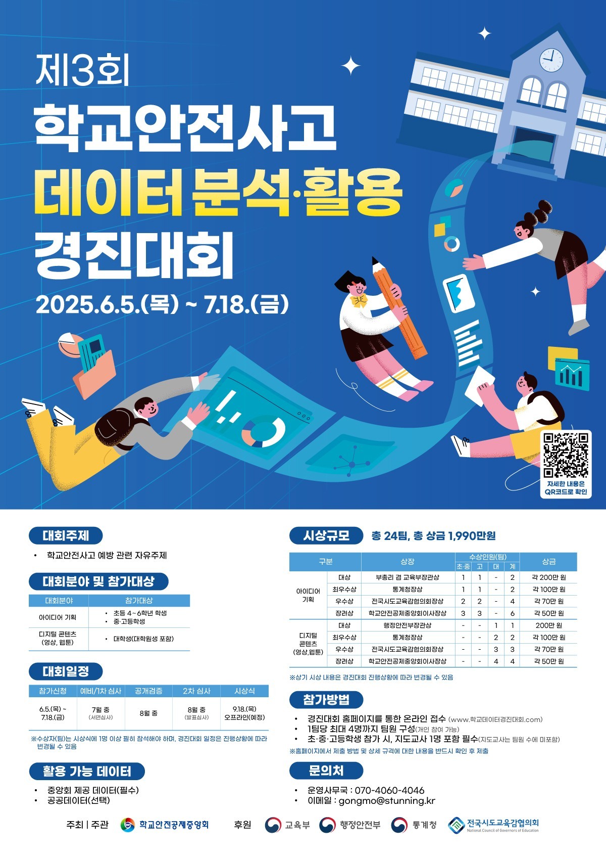 2025.6.5.(목) 학교안전공제중앙회 안전한 학교 공모전 및 학교안전사고 데이터 분석·활용 경진대회 개최[접수기간: '25.6.5.(목)~7.18.(금)] 내용입니다.