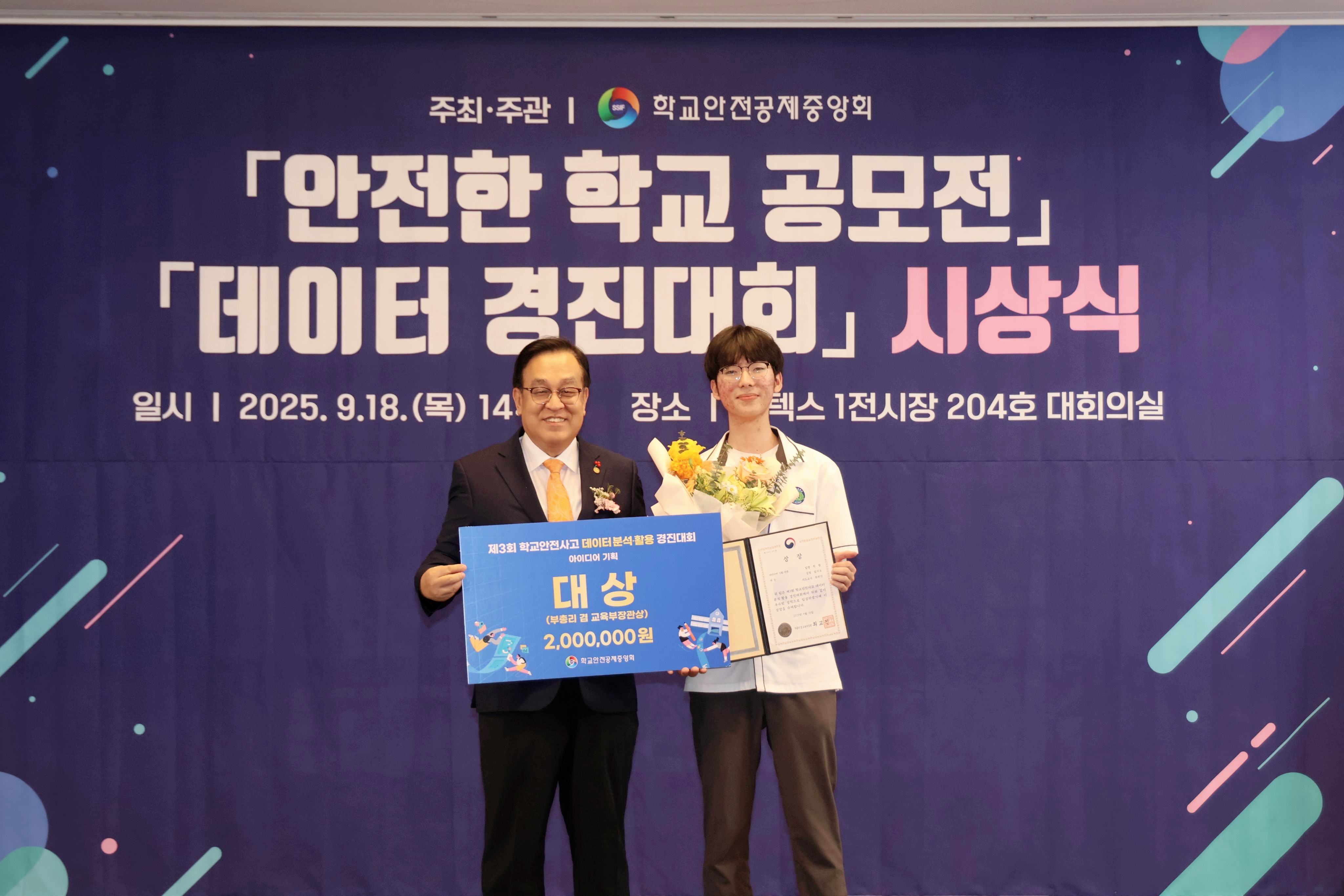 2025.9.18. 학교안전공제중앙회, 안전한 학교 공모전 및 데이터 경진대회 시상식 사진입니다.(일산 킨텍스 제1전시장 204호 대회의실)