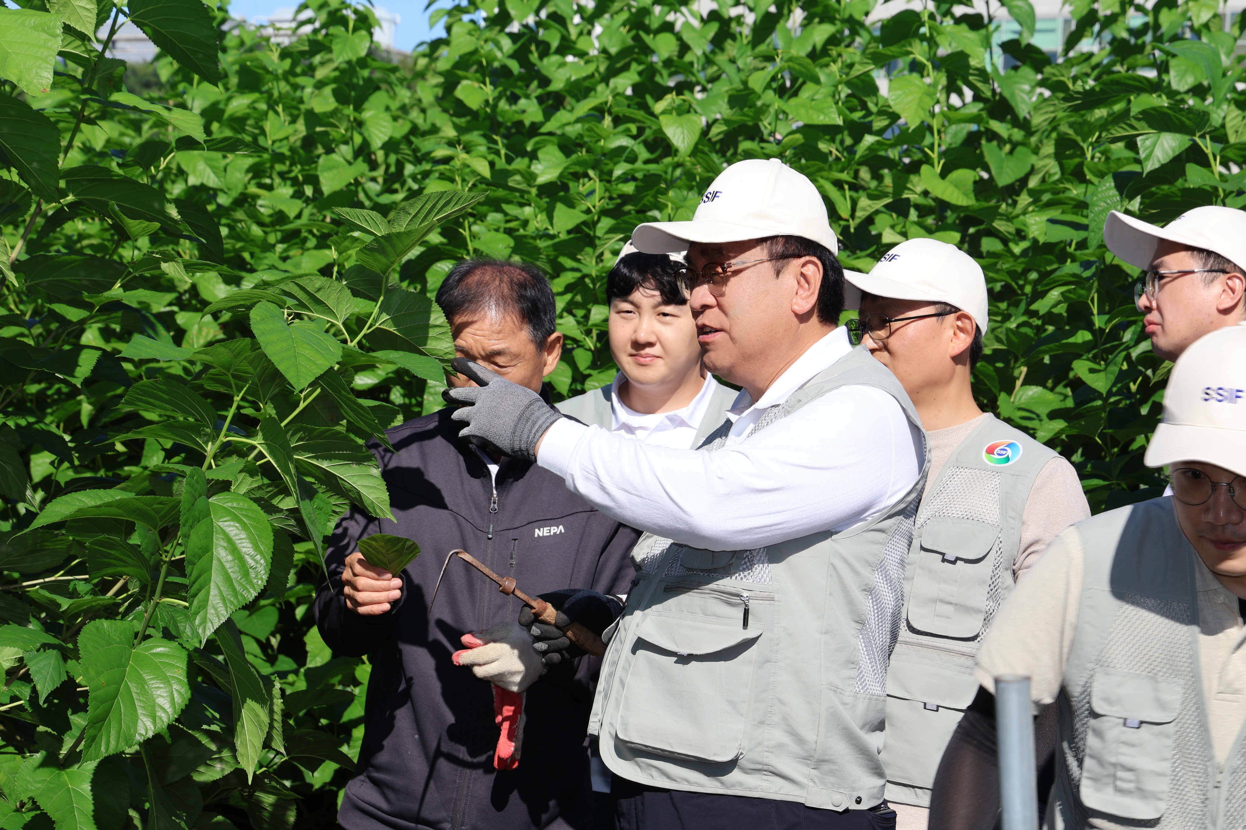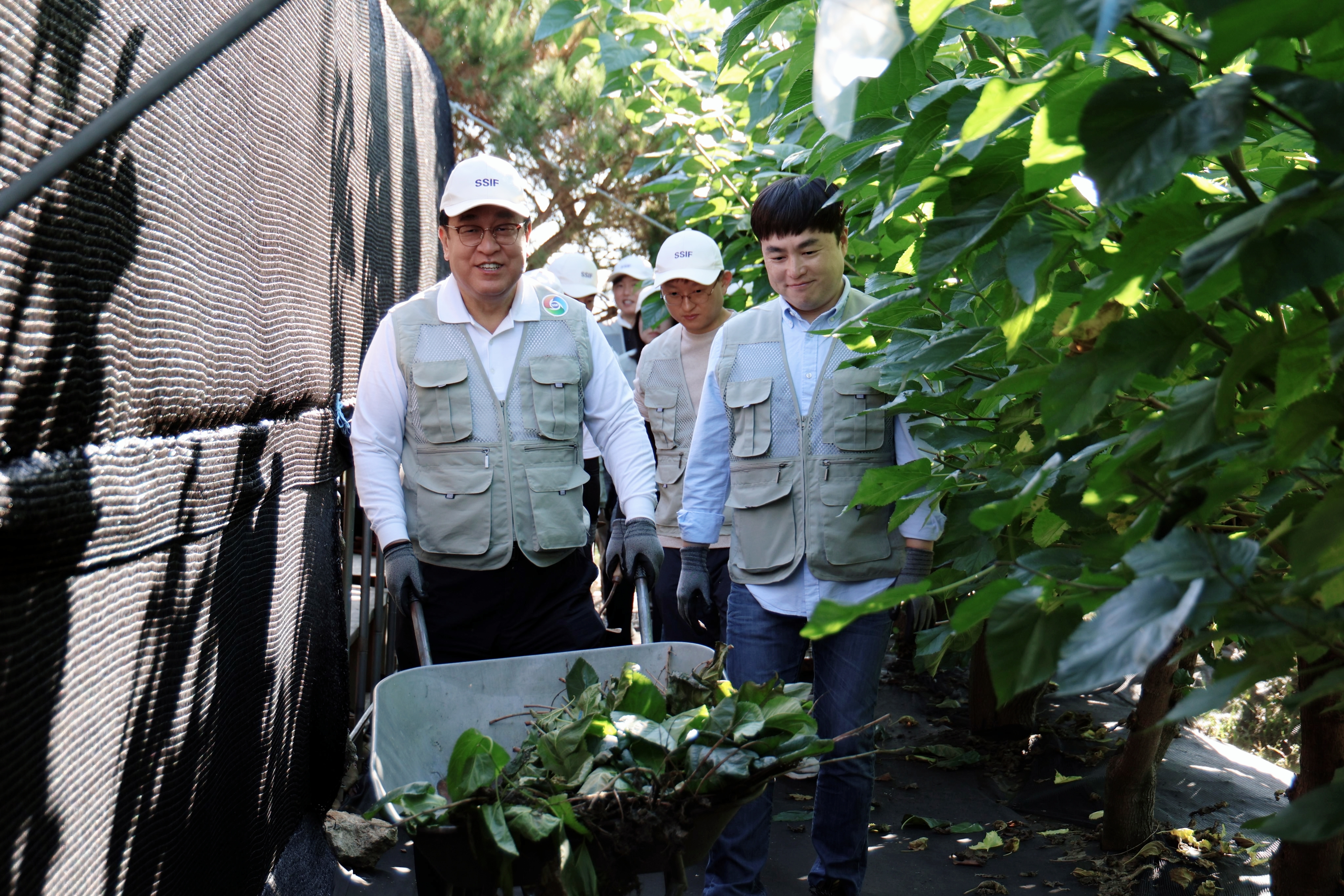 2025.10.15.(수) 학교안전공제중앙회, 파주시 오디 농가서 임직원 '농촌봉사활동' 사진입니다.(경기도 파주시)