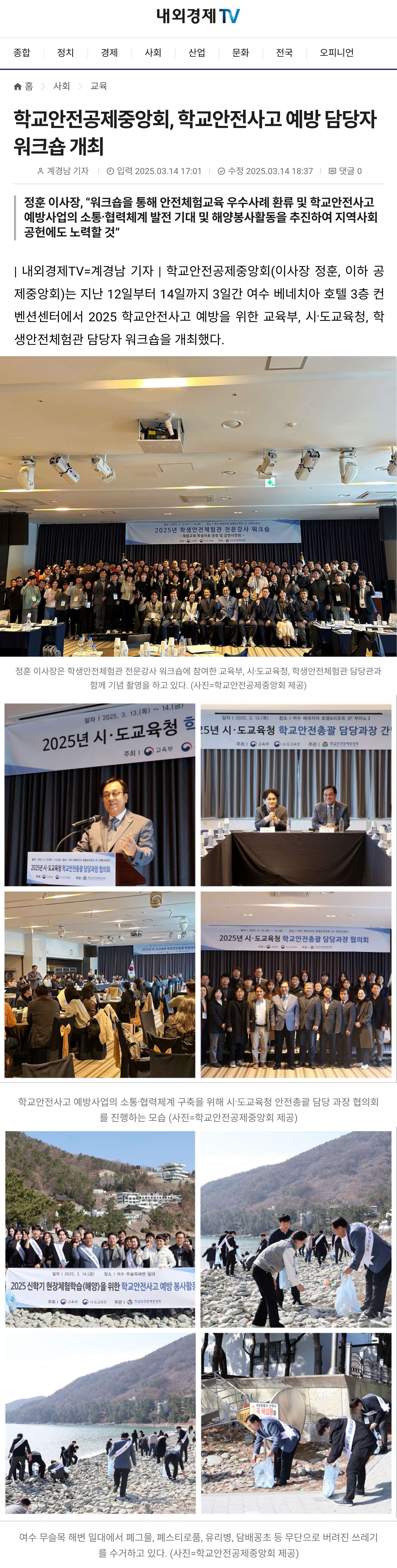 □ [내외경제TV] (2025.3.14.) 학교안전공제중앙회, 학교안전사고 예방 담당자 워크숍 개최 https://www.nbntv.co.kr/news/articleView.html?idxno=3035435