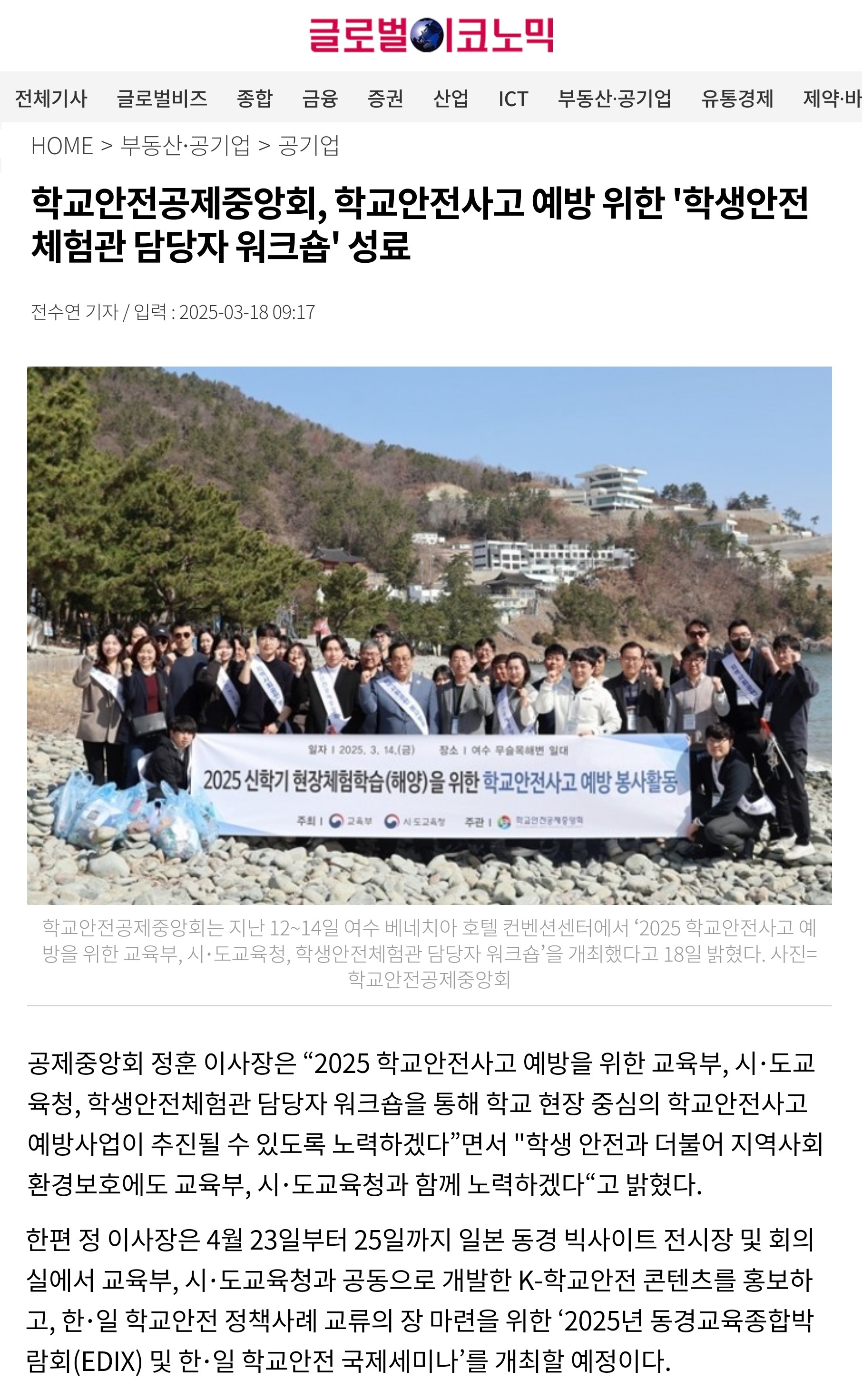 □ [글로벌이코노믹] (2025.3.18.) 학교안전공제중앙회, 학교안전사고 예방 위한 '학생안전체험관 담당자 워크숍' 성료 https://m.g-enews.com/article/Real-Estate/2025/03/202503180915494380a9fc143920_1