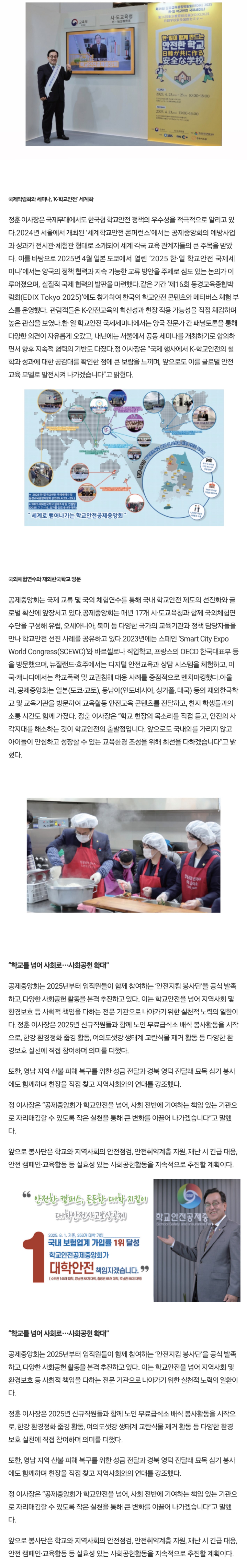 ○ (2025.8.5.) “학교안전은 더 이상 한 기관의 몫이 아닙니다. 모두가 함께 실천하고 확산시켜야 할 사회적 가치입니다.” https://www.sisanewszine.co.kr/news/articleView.html?idxno=13117