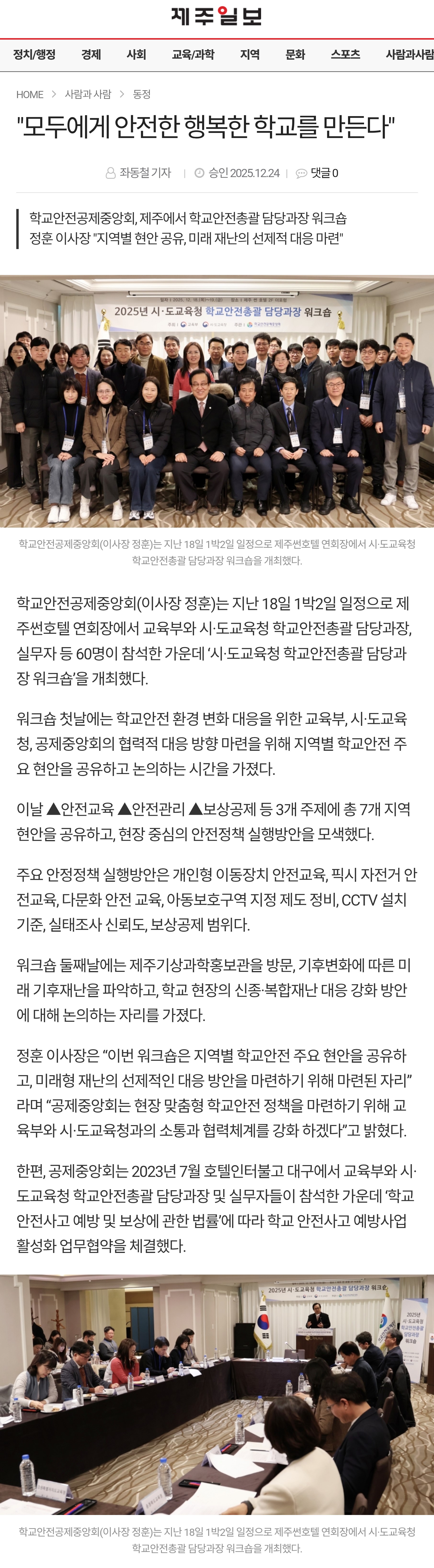 2025년 12월 학교안전공제중앙회 보도기사 입니다.