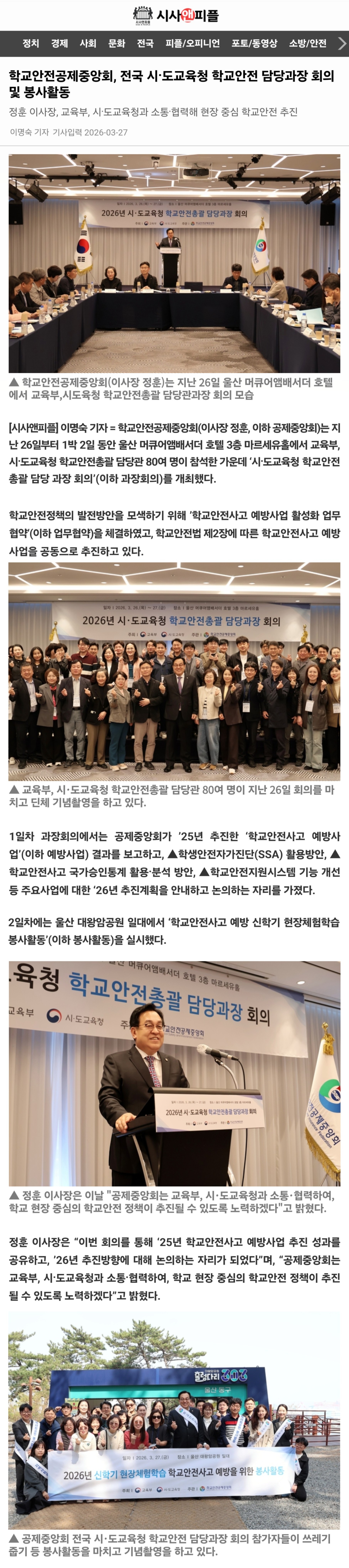□ [시사앤피플] (2026.03.27.) 학교안전공제중앙회, 전국 시⸱도교육청 학교안전 담당과장 회의 및 봉사활동 https://www.sisanpeople.com/14490