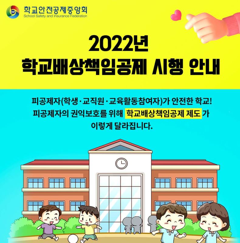 2022.1.1. 적용되는 학교배상책임공제 사업안내 리플릿 및 카드뉴스를 올려드립니다.